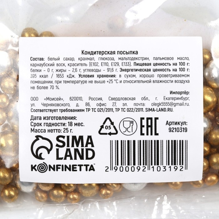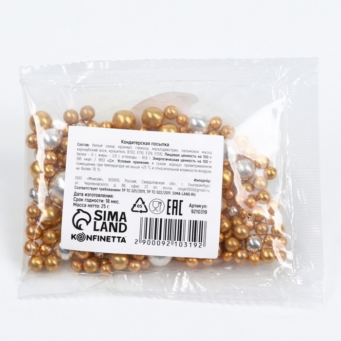 Посыпка кондитерская пасха фигурная: золотая, серебристая, 25 г.