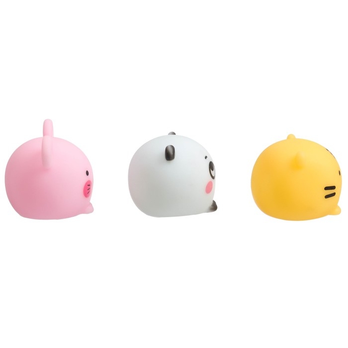 Забавные игрушки из мягкого материала не тонут в воде и при намокании приклеиваются к кафелю или ванне.