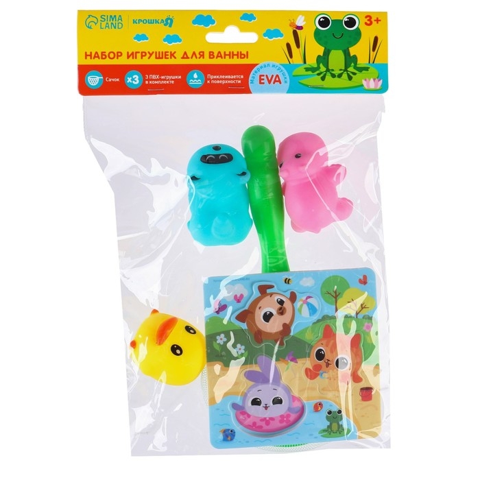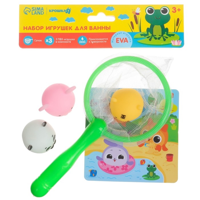 Набор игрушек для ванны «Кругляшики» + сачок + 3 пвх игрушки, Крошка Я