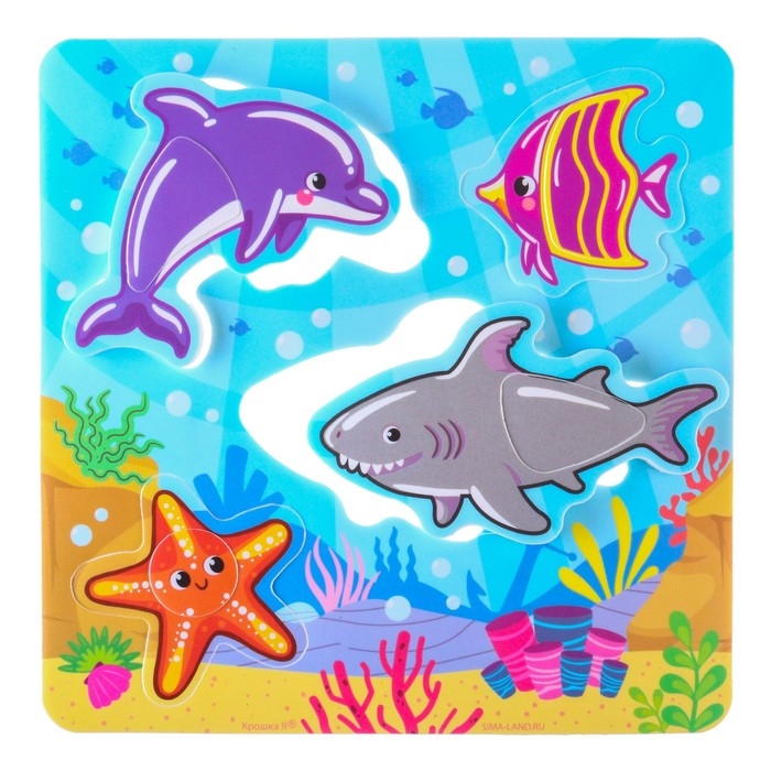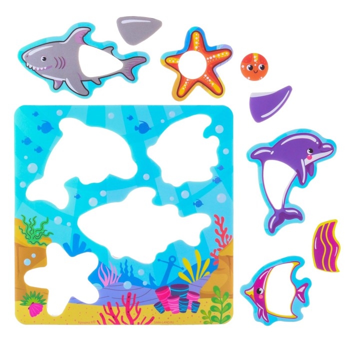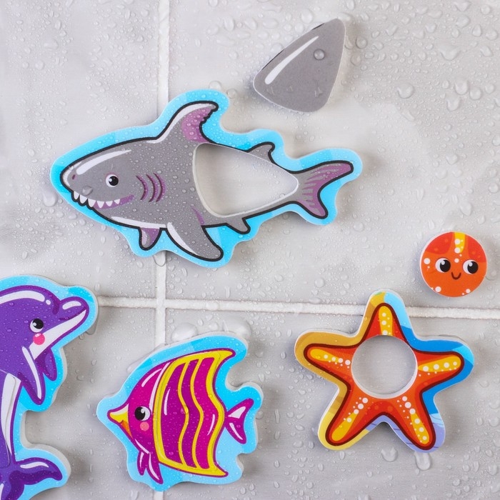 Игрушка пазл для ванны "Морской мир" с сачком + удочка, Крошка Я