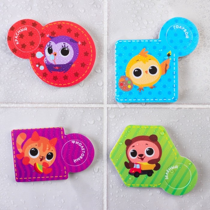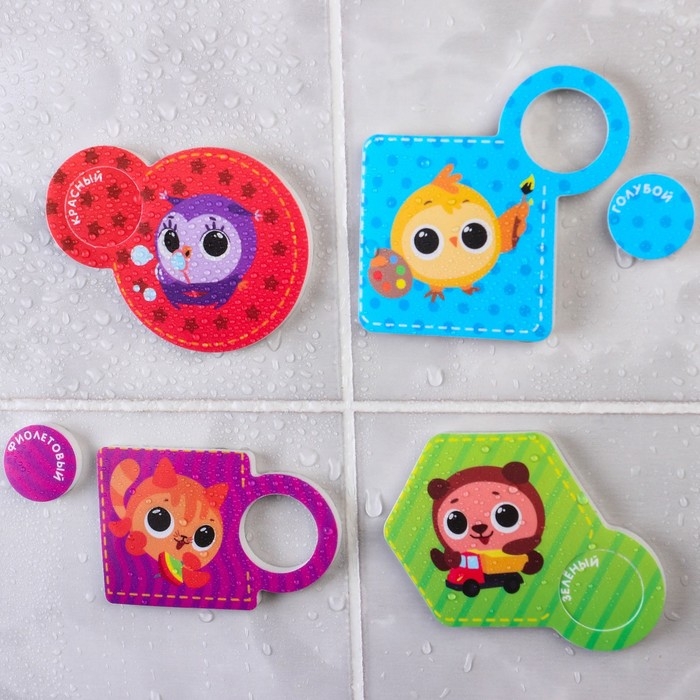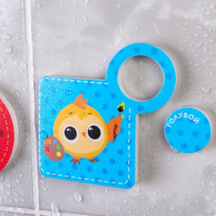 Забавные игрушки из мягкого материала не тонут в воде и при намокании приклеиваются к кафелю или ванне.
