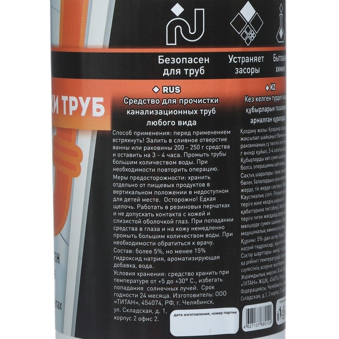 Средство для прочистки труб TITAN, 900 мл