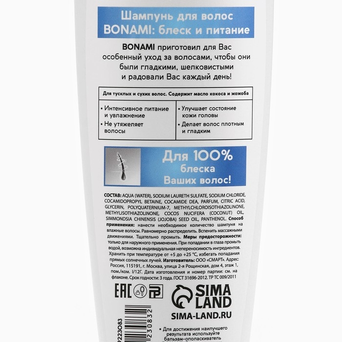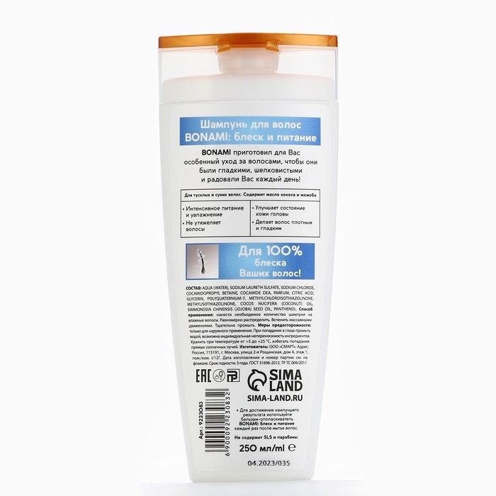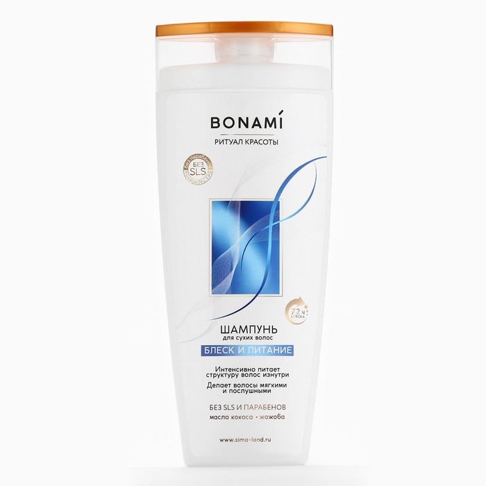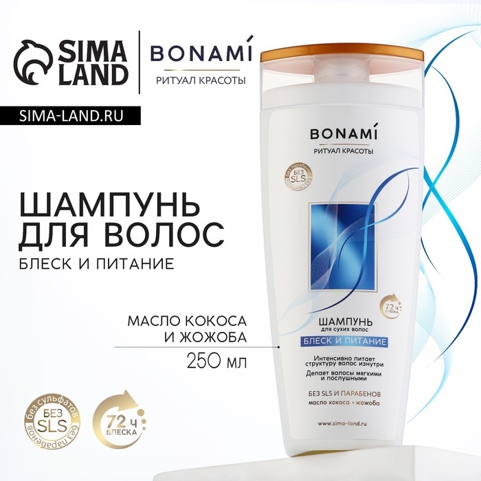 Шампунь для сухих волос с маслом кокоса и жожоба, блеск и питание, 250 мл, BONAMI