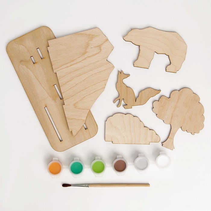 - В комплект входят деревянные заготовки, краски и кисточка, для прочности сувинира вы можете использовать клей при сборке.