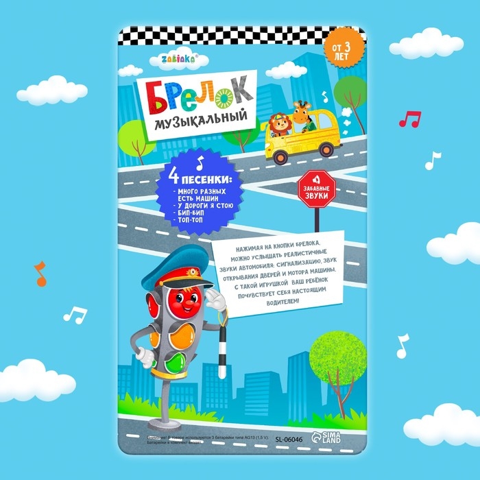 - Проигрывает 4 песенки: «Машины», «Светофор», «Би-би, гудят машины», «Пешеходный переход».