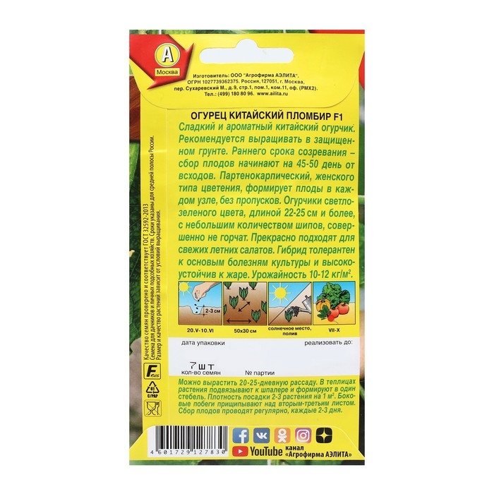 Семена Огурец "Китайский пломбир", F1, 7 шт