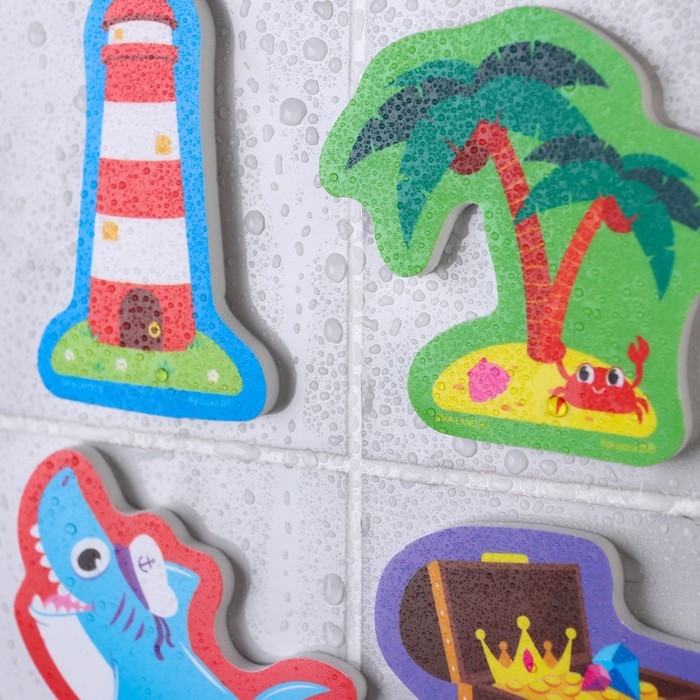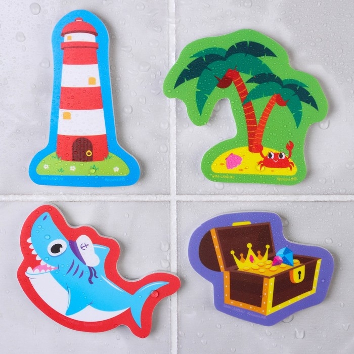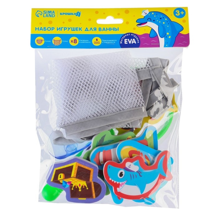 Набор игрушек для ванны "Пираты"8 штук с сеткой + сачок, Крошка Я