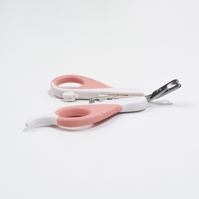 Ножницы-когтерезы "Пижон" Premium изогнутые, с упором для пальца, бело-розовые