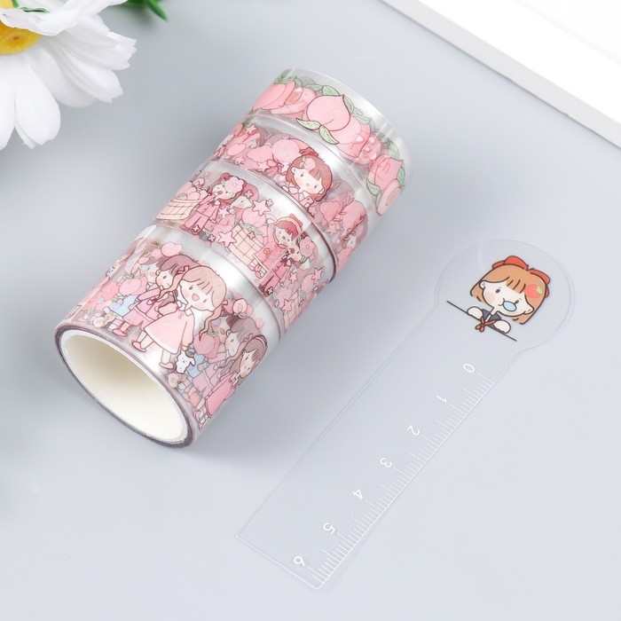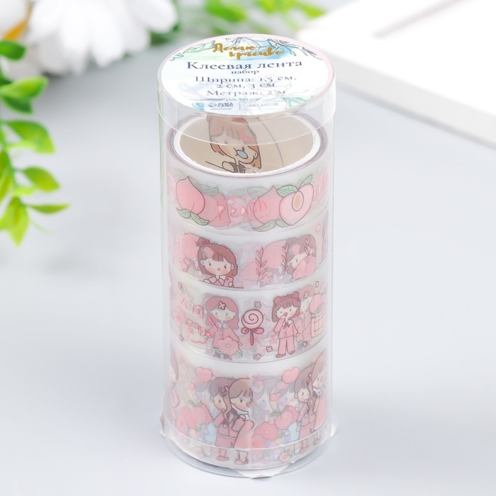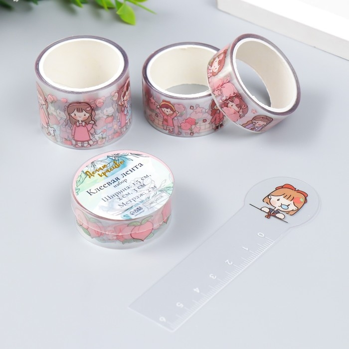 Клейкая лента пластик "Девочки" набор 4 шт + закладка шир. 1,5/2/3 см дл. 2 м 4хх4х10 см