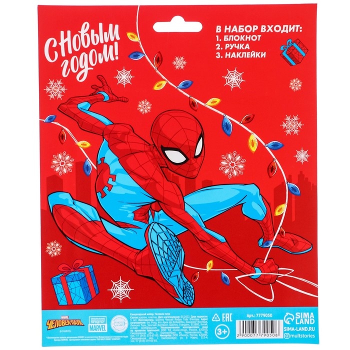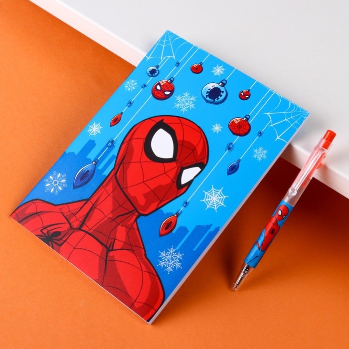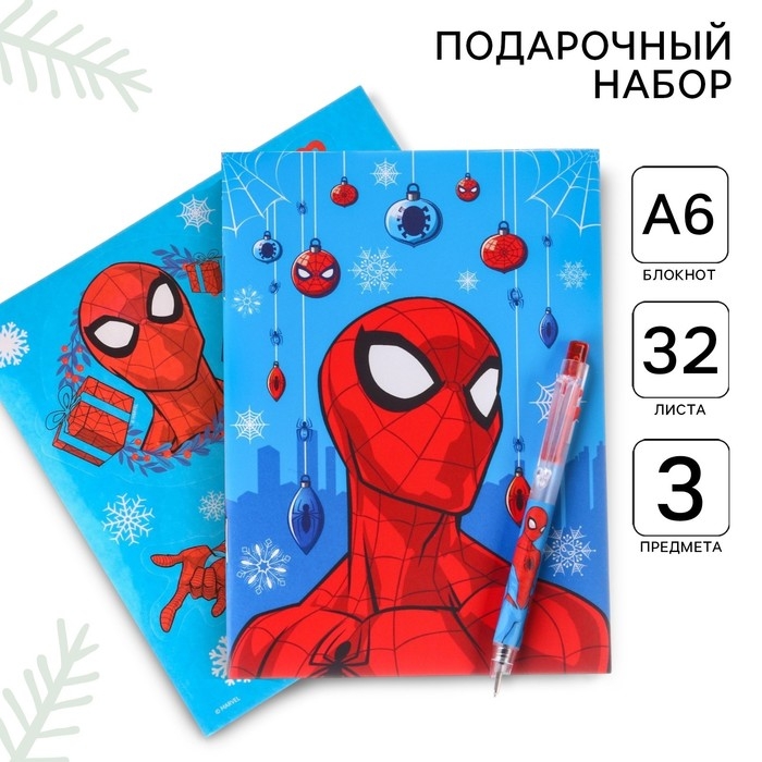 Канцелярский набор "С новым годом", блокнот А6, ручка, наклейки, Человек-Паук