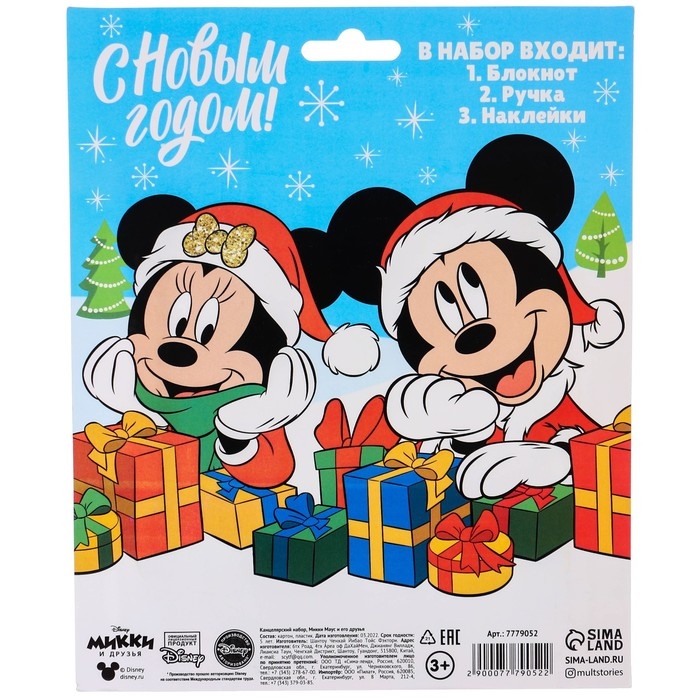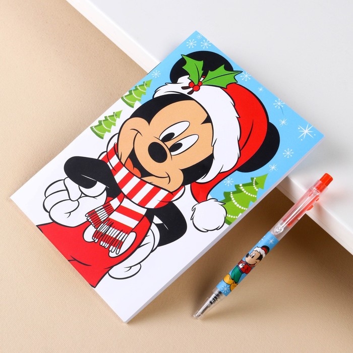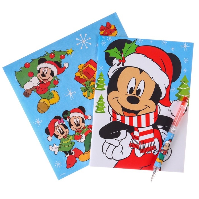 Новый год. Подарочный набор канцелярии "С новым годом", блокнот А6, ручка, наклейки, Микки Маус