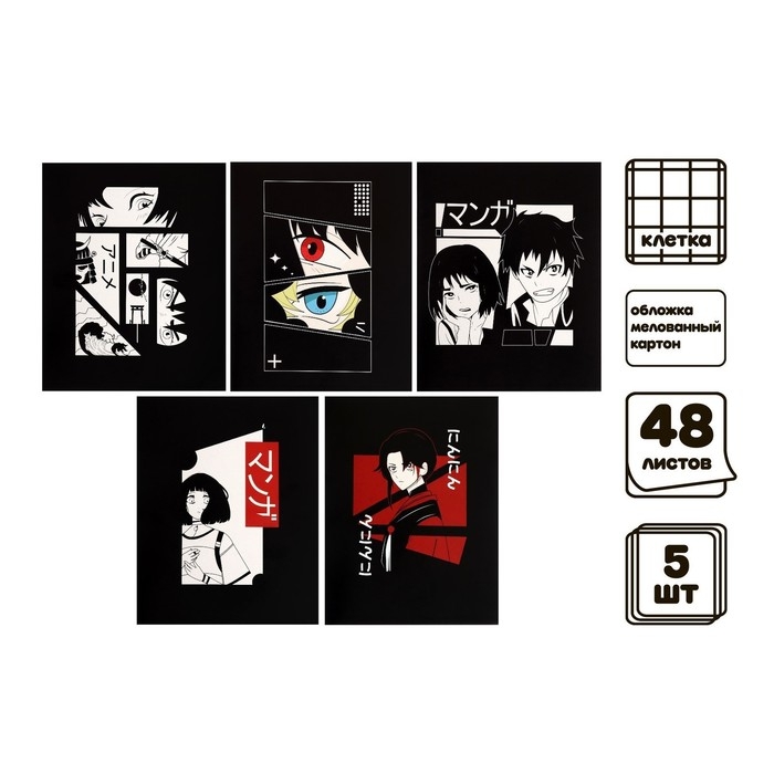 Комплект тетрадей из 5 штук, 48 листов в клетку Calligrata "АнимЭ", обложка мелованный картон, блок офсет