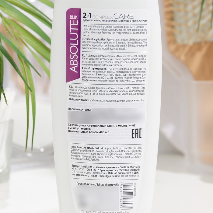 Шампунь для волос Absolute Blik против перхоти Complex Care, 400 мл