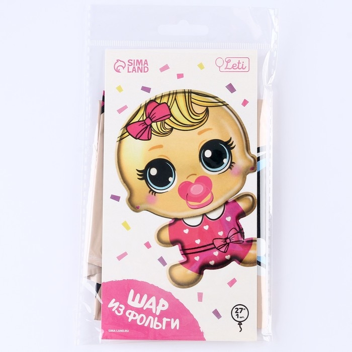 Фольгированный шар «Малышка» — отлично подойдёт в качестве дополнения к подарку на первый день рождения девочки или для оформления помещения. Также шар можно использовать как украшение фотозоны или атрибут для фотосессии.