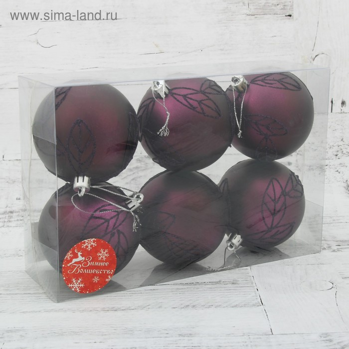 Набор шаров пластик d-8 см, 6 шт "Листики"