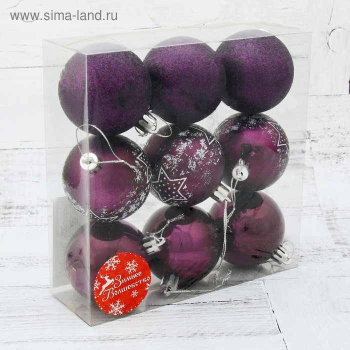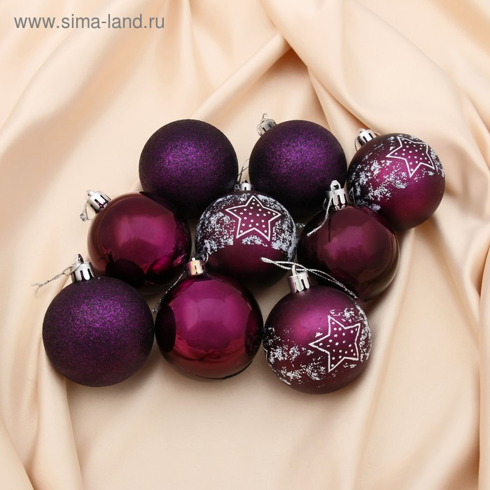 Набор шаров пластик d-6 см, 9 шт "Звёздочка" фиолетовый