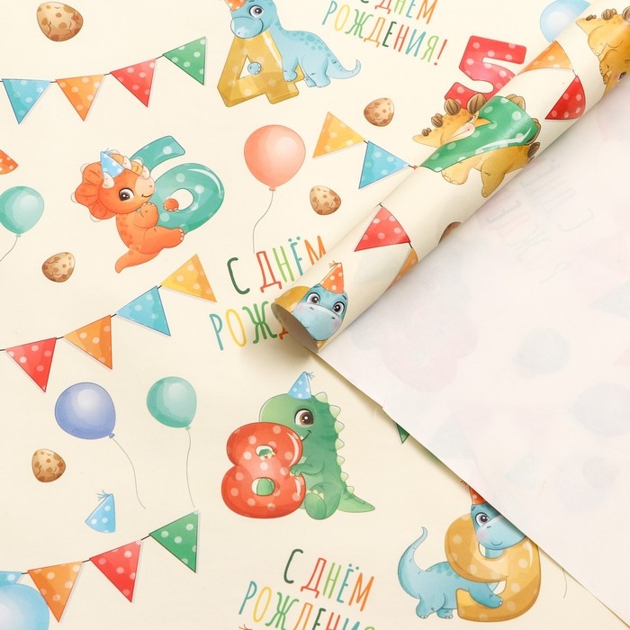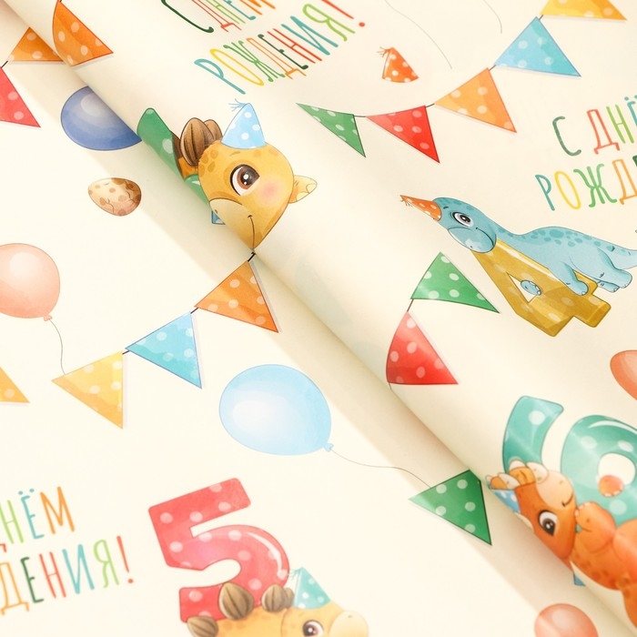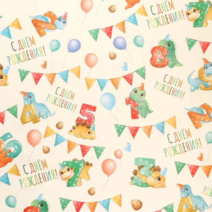 Бумага упаковочная,глянцевая "С Днем Рождения!", 70 х 100 см, 1 лист