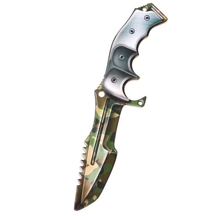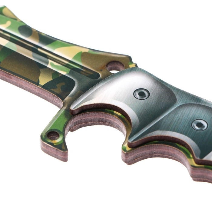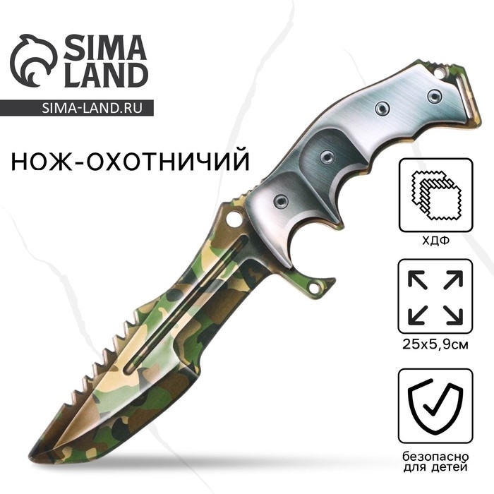 Охотничий нож из дерева не является холодным оружием, он изготовлен из фанеры высокого качества. Преимущество деревянного ножа в его прочности - он с усиленной ручкой в несколько слоёв. На детскую игрушку нанесен двухсторонний рисунок. Стильный дизайн игрушечного ножа, а также его форма притягивают внимание. О веселой и динамичной игре мальчиков можно не беспокоиться - у них в руках безопасное оружие. Сувенирный нож не имеет острых краёв и не может посадить занозу или нанести вред. Нож игрушка тщательно отшлифован, клинок не заточен! Идеален как дополнение к подарку на 23 февраля, Новый Год или день рождения.