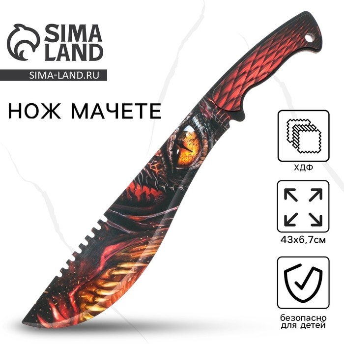 Деревянное оружие, детское сувенирное «Дракон», нож мачете, 43 х 6,7 см - это яркое и безопасное оружие для детей!