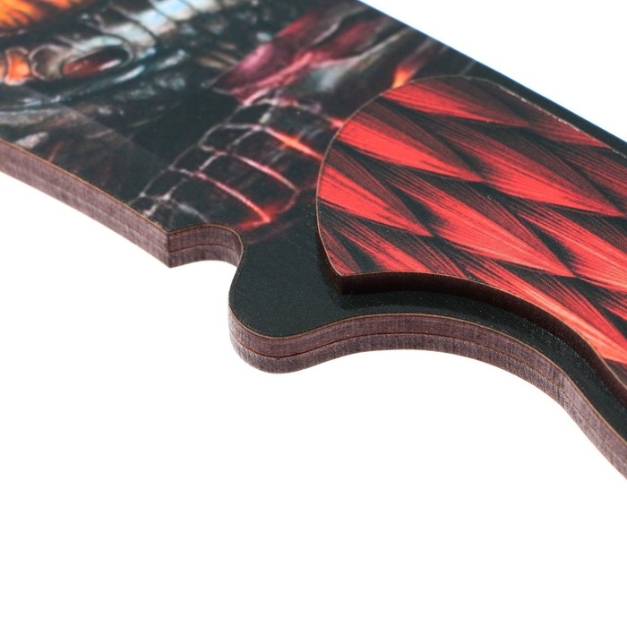 Нож мачете из дерева не является холодным оружием, он изготовлен из фанеры высокого качества. Преимущество деревянного ножа в его прочности - он с усиленной ручкой в несколько слоёв. На детскую игрушку нанесен двухсторонний рисунок. Стильный дизайн игрушечного ножа, а также его форма притягивают внимание. О веселой и динамичной игре мальчиков можно не беспокоиться - у них в руках безопасное оружие. Сувенирный нож не имеет острых краёв и не может посадить занозу или нанести вред. Нож игрушка тщательно отшлифован, клинок не заточен! Идеален как дополнение к подарку на 23 февраля, Новый Год или день рождения.