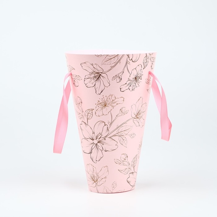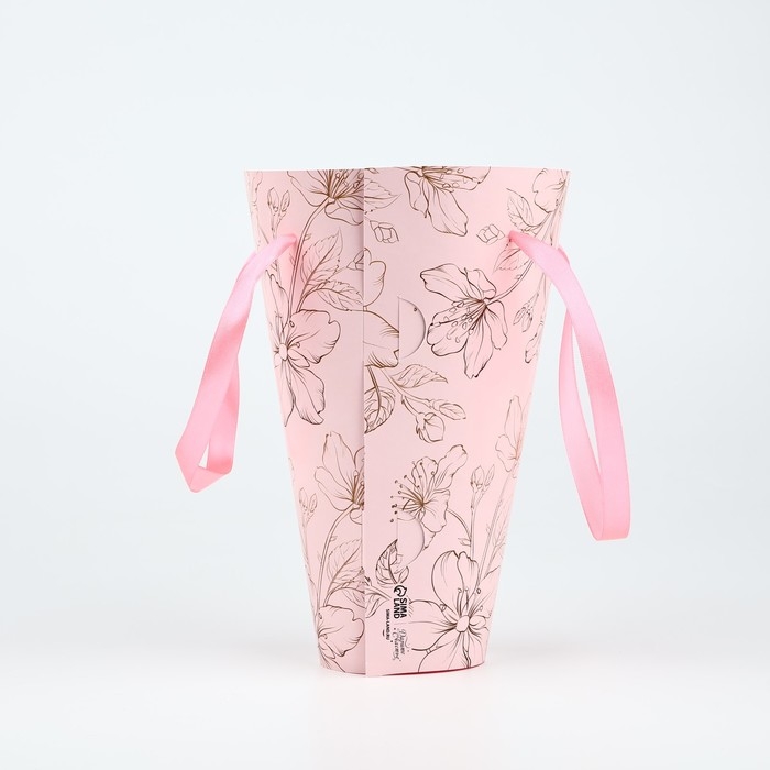 Пакет для цветов конусный круглый складной на лентах «Цветы», 15 х 23.3 х 7.5 см