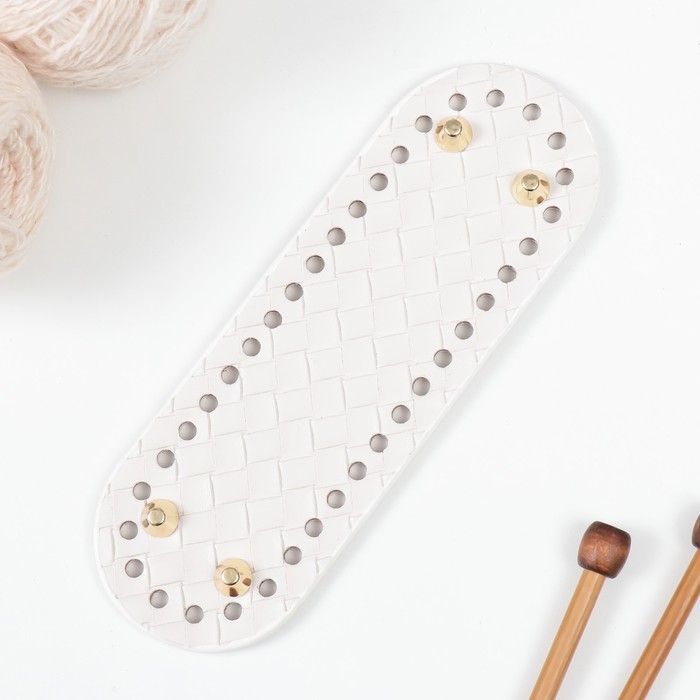 Основа для вязаных изделий кожзам "Вытянутая плетёнка" белый 6х18 см