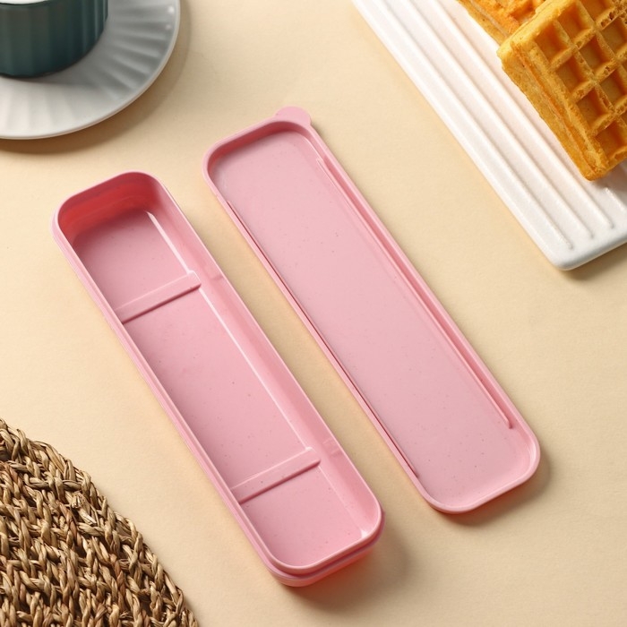 Компактный и легкий футляр, предназначенный для хранения и переноски столовых приборов во время путешествий или поездок. Он обычно изготовлен из прочного и безопасного для здоровья пластика, который обеспечивает долговечность и надежность изделия.
