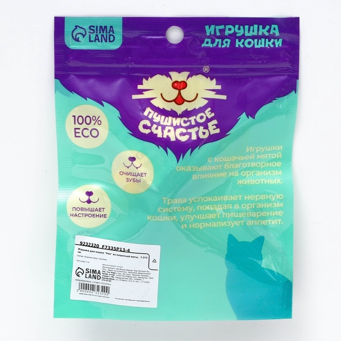 Игрушка упакована в пакет, который удерживает запах игрушки внутри. При вскрытии упаковки может присутствовать интенсивный запах натуральных добавок, который со временем станет более мягким. Неиспользуемую игрушку рекомендуем хранить в пакете.