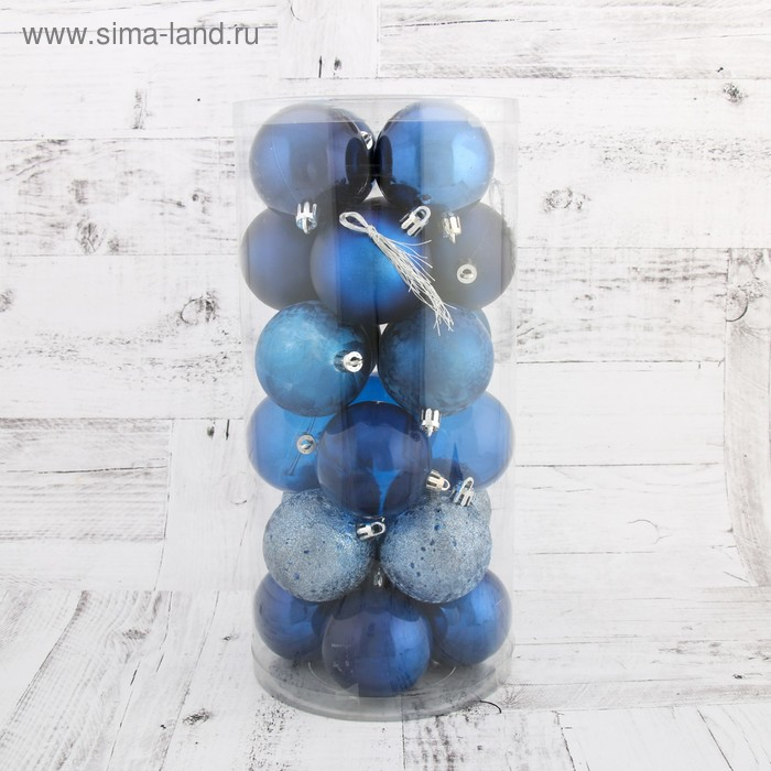 Набор шаров пластик d-6 см, 24 шт "Преломление" синий