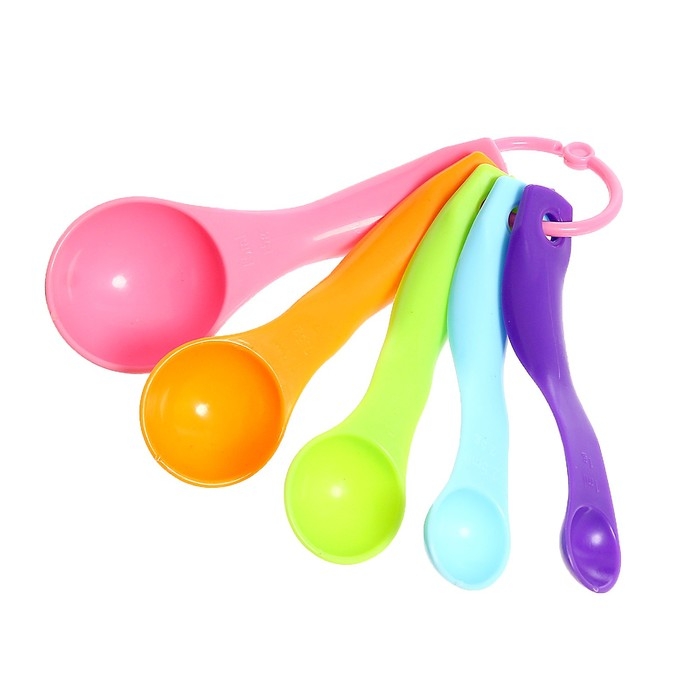 - Мерные ложки позволяют накладывать сыпучие вещества и определять их массу.