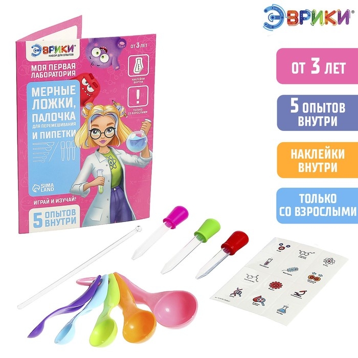 Набор для опытов «Моя первая лаборатория», ложки, палочка и пипетки