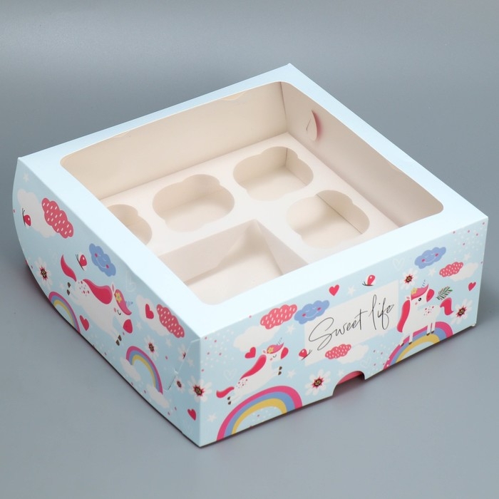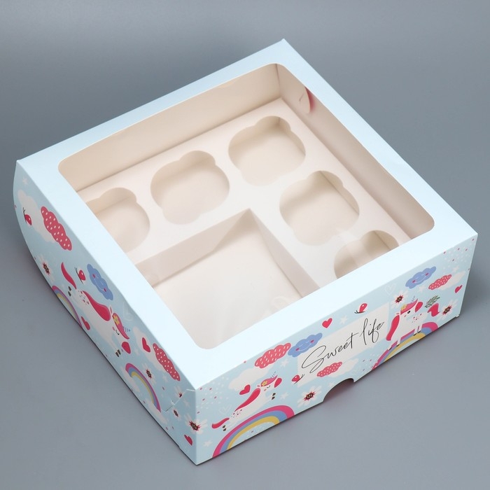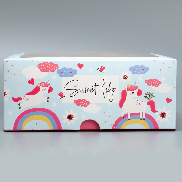 Коробка для капкейков и бенто-торта, кондитерская упаковка «Ванильные единороги», 25 х 25 х 10 см
