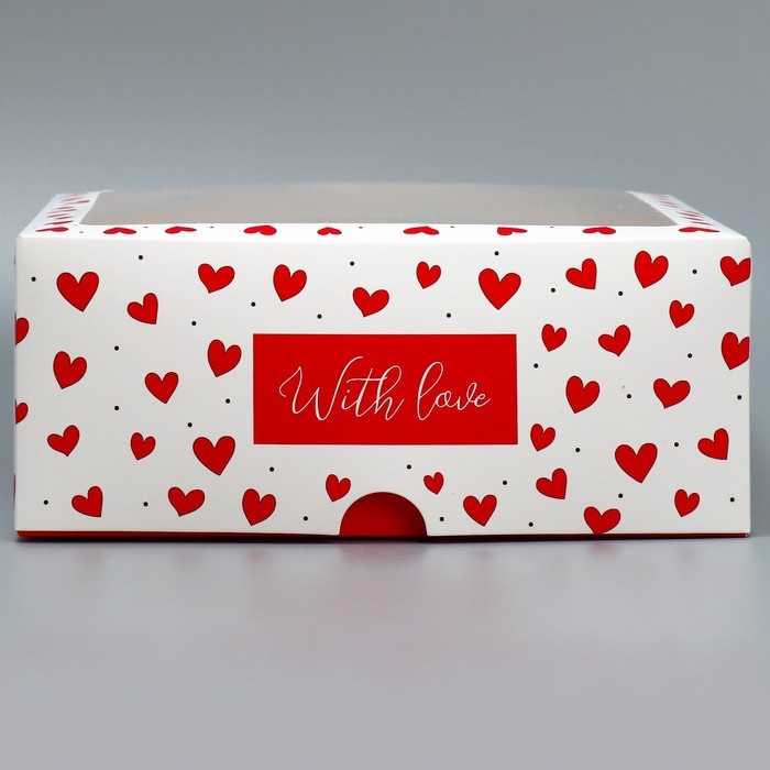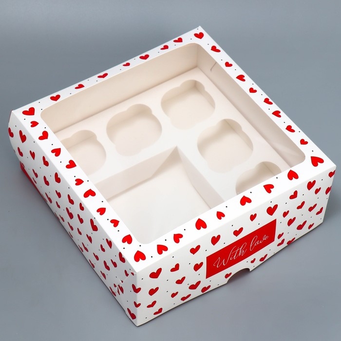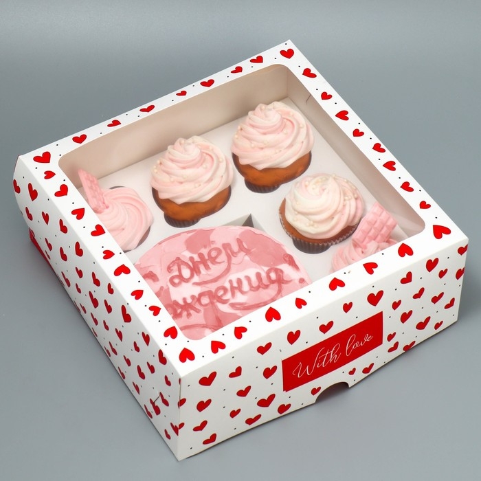 Коробка для капкейков и бенто-торта, кондитерская упаковка «Сердечки», 25 х 25 х 10 см