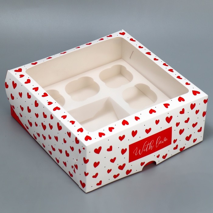 Коробка для капкейков, кондитерская упаковка, 4 ячейки «Для тебя», 16 х 16 х 7.5 см
