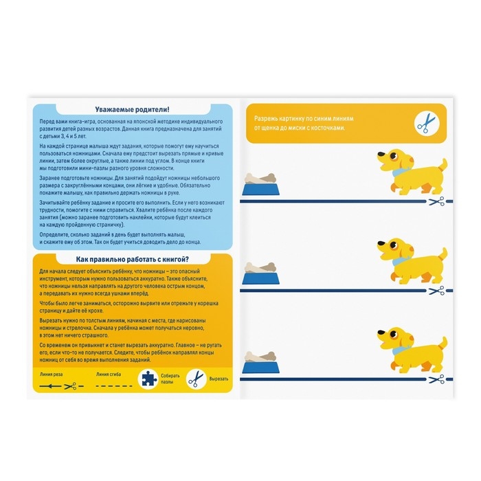 Настольная книга-игра «Учимся вырезать» простые линии, 22 стр, 3+