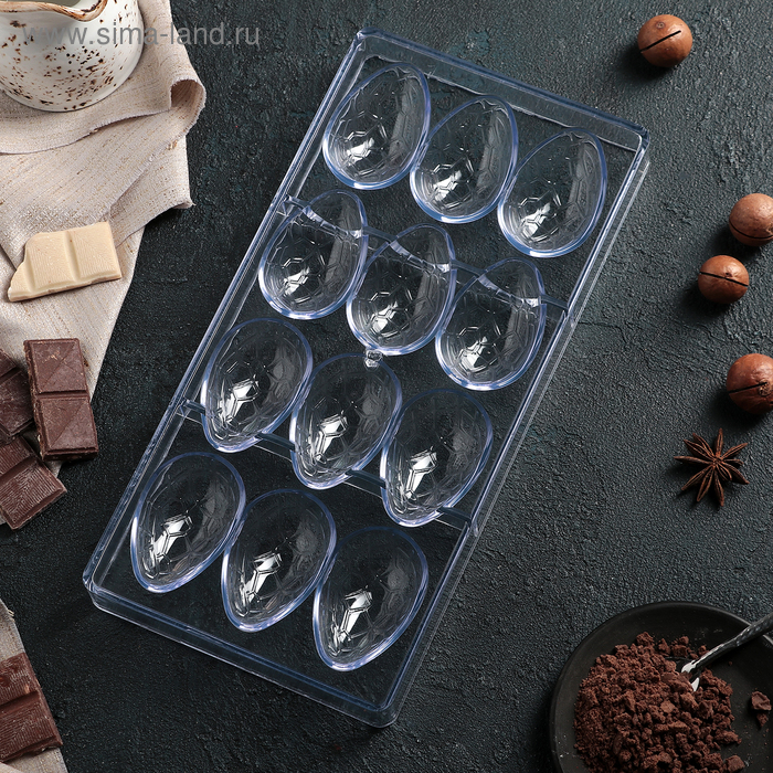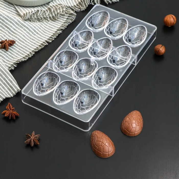 Форма для конфет и шоколада KONFINETTA «Шоколадное яйцо», 27,5×13,5 см, 12 ячеек 3,6×5,7×1,5 см, цвет прозрачный