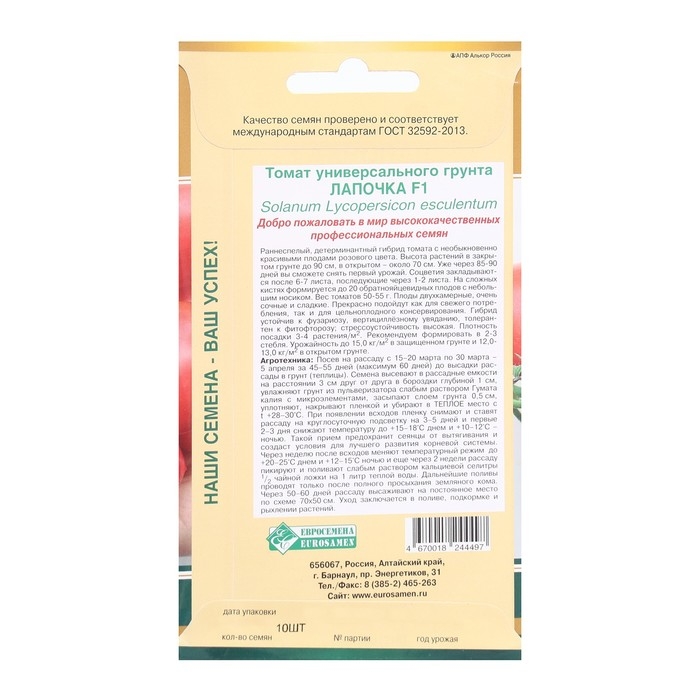 Семена Томат универсального типа Лапочка F1, 10 шт