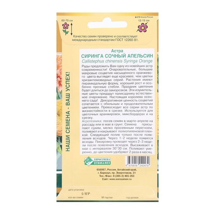 Семена Цветов Астра СИРИНГА Сочный апельсин, 0,1 г