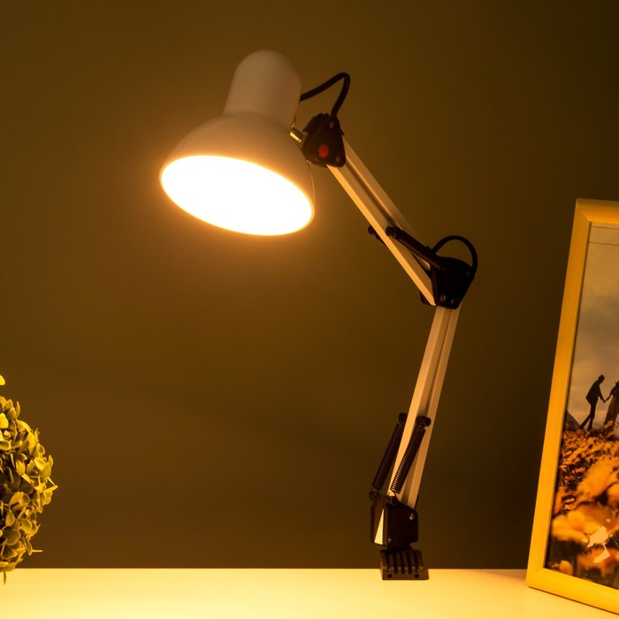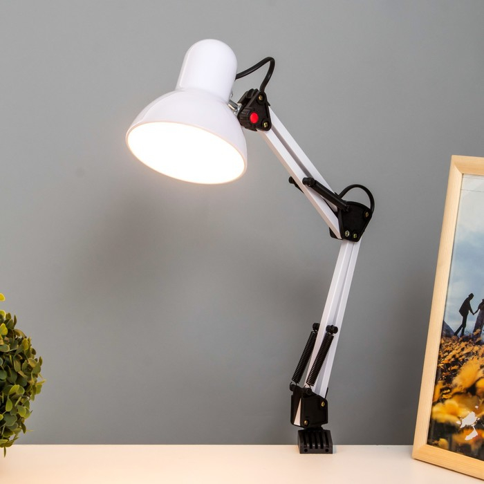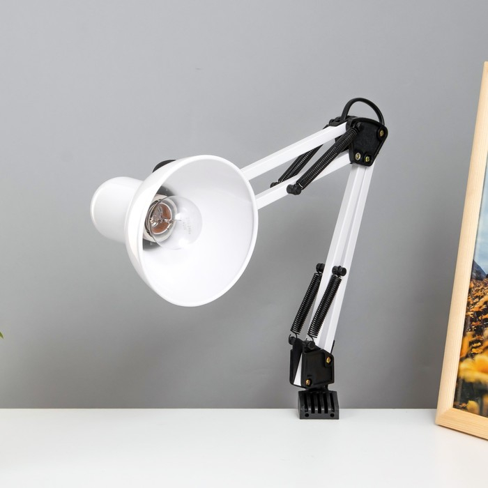 Лампа настольная Е27, h=55 см, шарнирная, на зажиме (220В) белая RISALUX