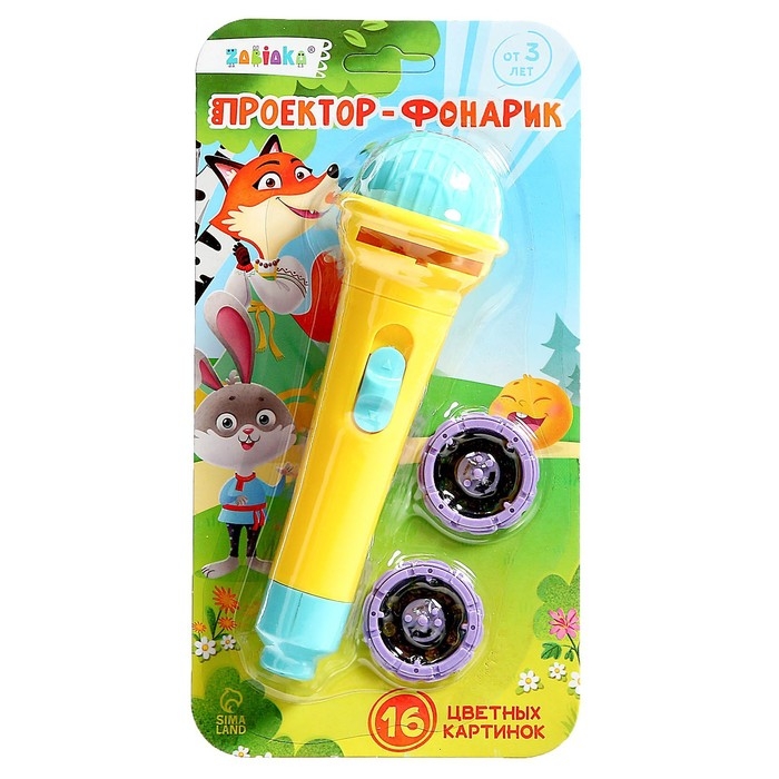 В набор входит проектор-фонарик и 3 слайда (24 цветные картинки).