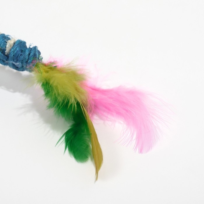Дразнилка для кошек "Двойной пушок", с шариком и сизалевой обмоткой, 32 см, синяя/белая