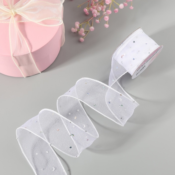 Лента капроновая «Волна», с блёстками, 50 мм, 9 ± 1 м, цвет белый