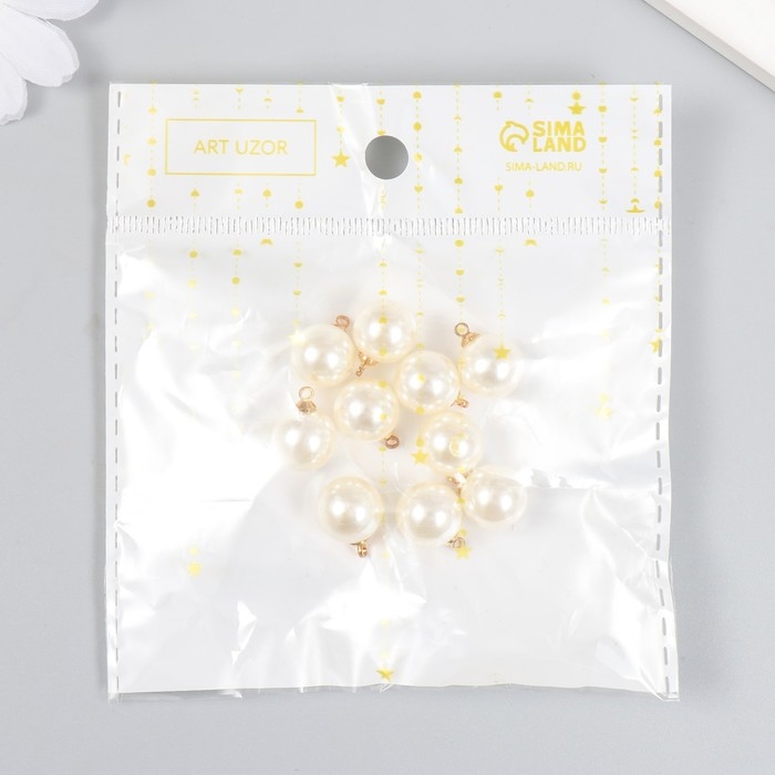 Декор для творчества пластик "Жемчужный шарик с петелькой" 1,2х1,2 см набор 10 шт