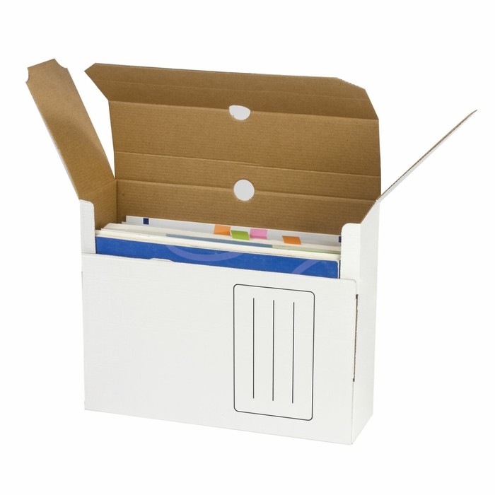 Короб архивный с клапаном Calligrata изготовлен из микрогофрокартона белого цвета. Удобен для краткосрочного хранения документации, а так же длительного архивного хранения. Прочная конструкция и стандартизованный размер позволяют хранить документы вертикально и горизонтально на стеллажах или в архивных коробах. Легкая сборка. На лицевой и боковых гранях имеются поля для маркировки. Ширина корешка 100 мм. Поставляется в разобранном виде.