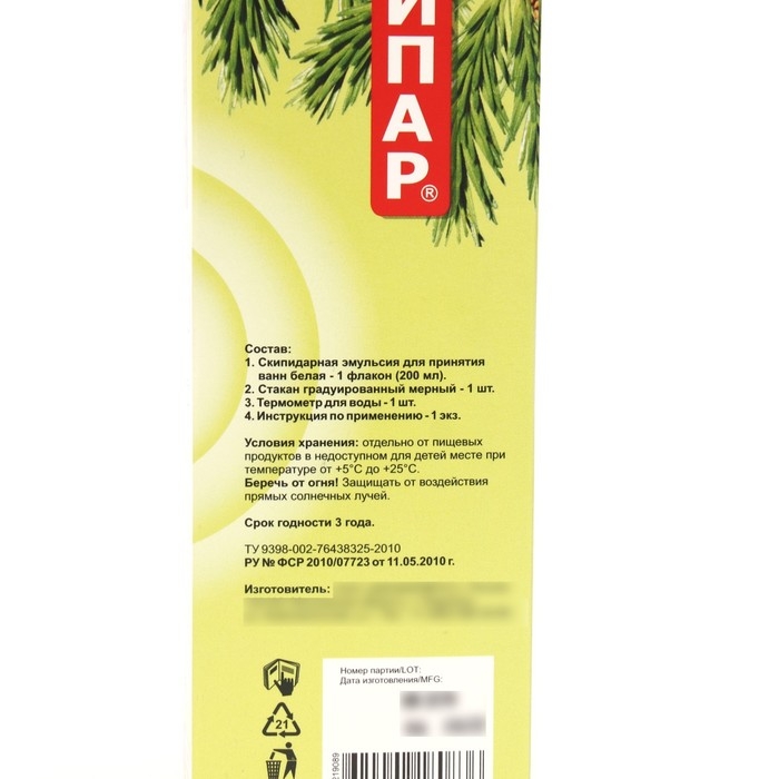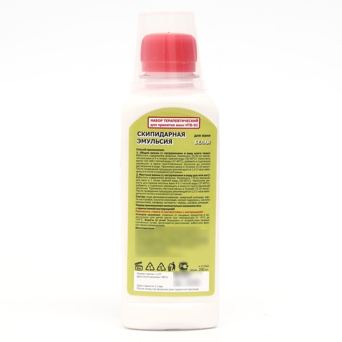 Комплектация: скипидарный раствор белый, стакан градуированный мерный, термометр для воды.