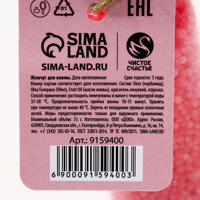 Жемчуг для ванны «Лучшей в мире», 75 г, аромат ягодного десерта, ЧИСТОЕ СЧАСТЬЕ