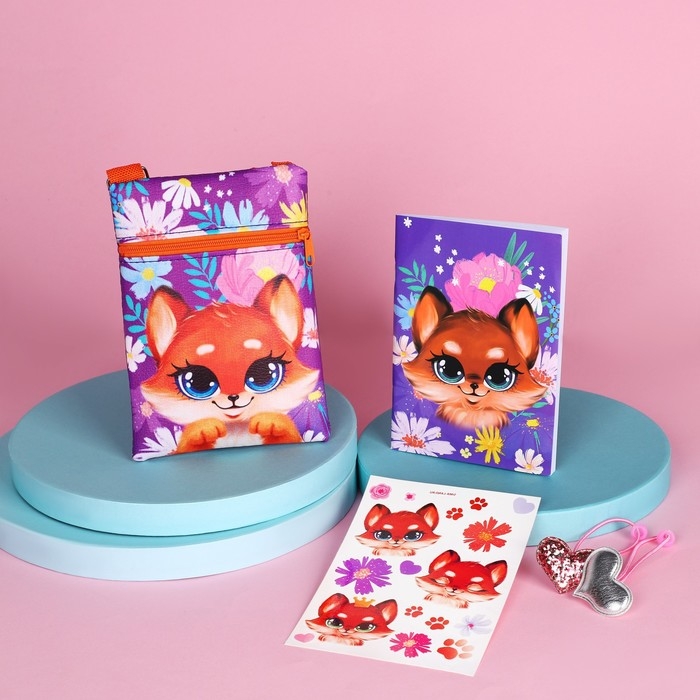 Подарочный набор для девочки «Лисенок», сумка, набор резинок, блокнот, тату