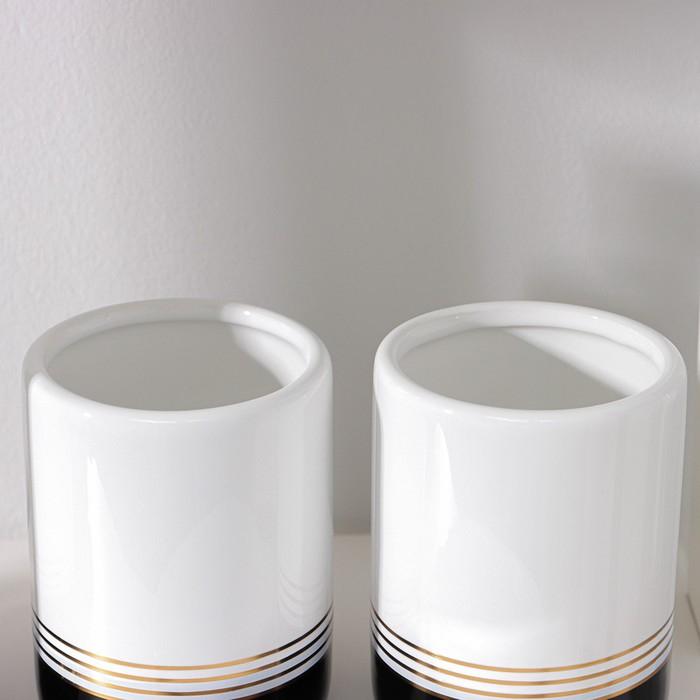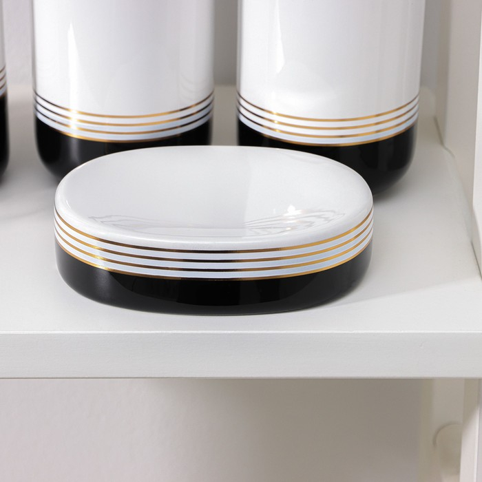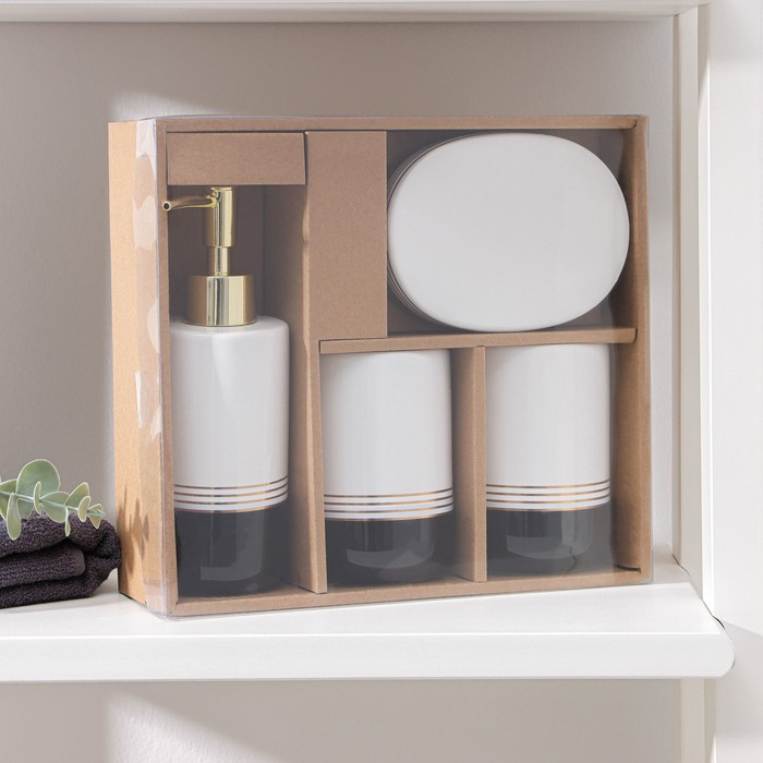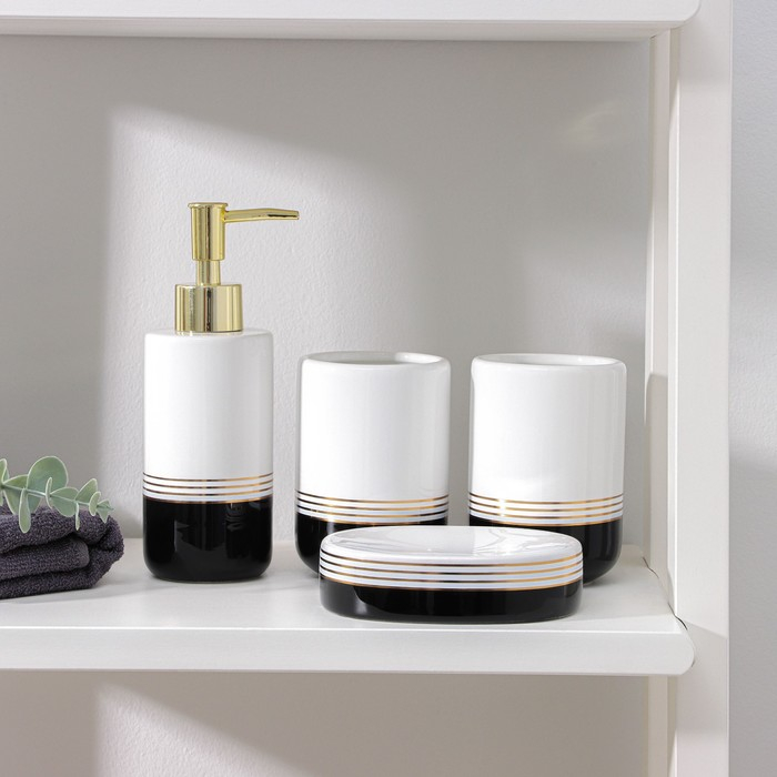 Набор аксессуаров для ванной комнаты «Лили», 4 предмета (дозатор 300 мл, мыльница, 2 стакана), цвет бело-чёрный