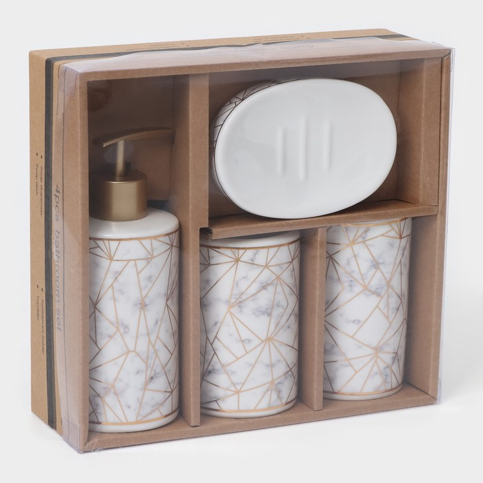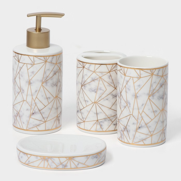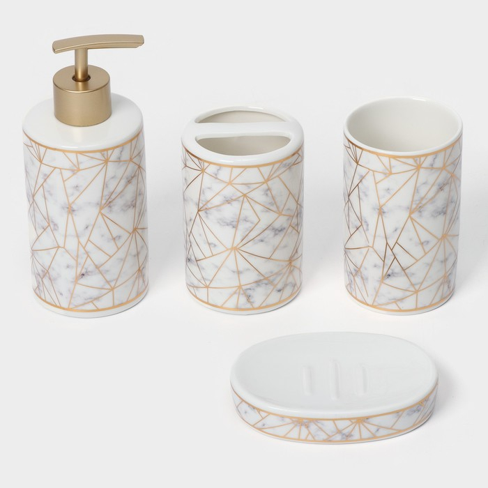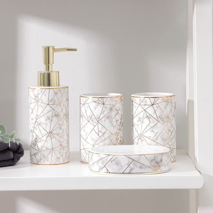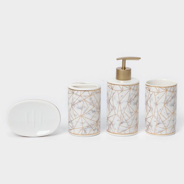 Набор аксессуаров для ванной комнаты Доляна «Изящество», 4 предмета (дозатор 250 мл, мыльница, 2 стакана), цвет белый