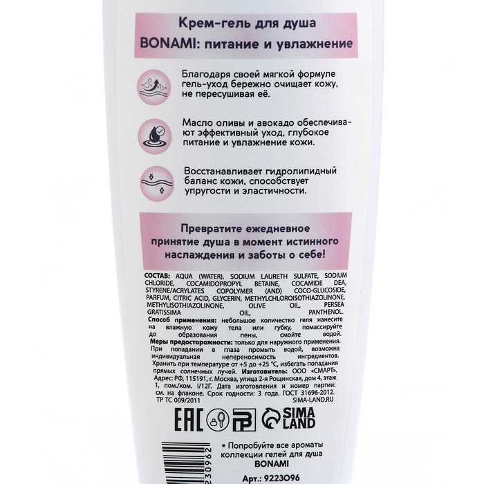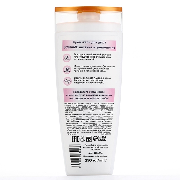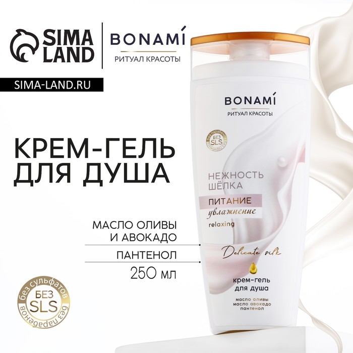 Гель для душа с пантенолом, питание и увлажнение, 250 мл, аромат нежности шёлка, BONAMI